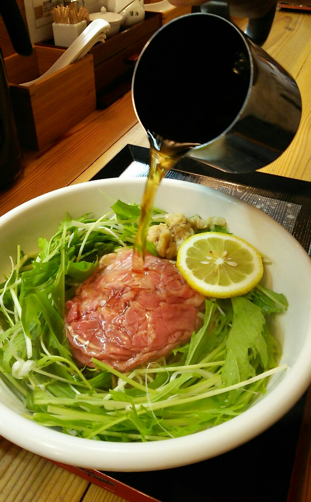 あつあつのスープを生肉にかけて食べる楽しみが良いですね^^
