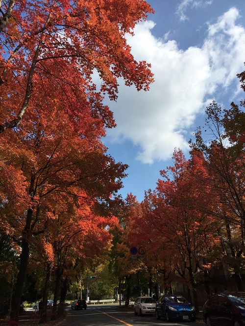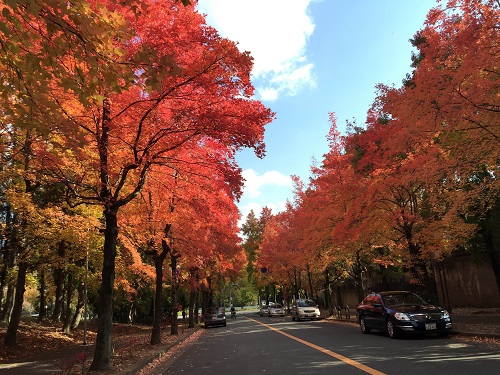 両側に見事に色付いた木々が立ち並び、圧巻の美しさです。